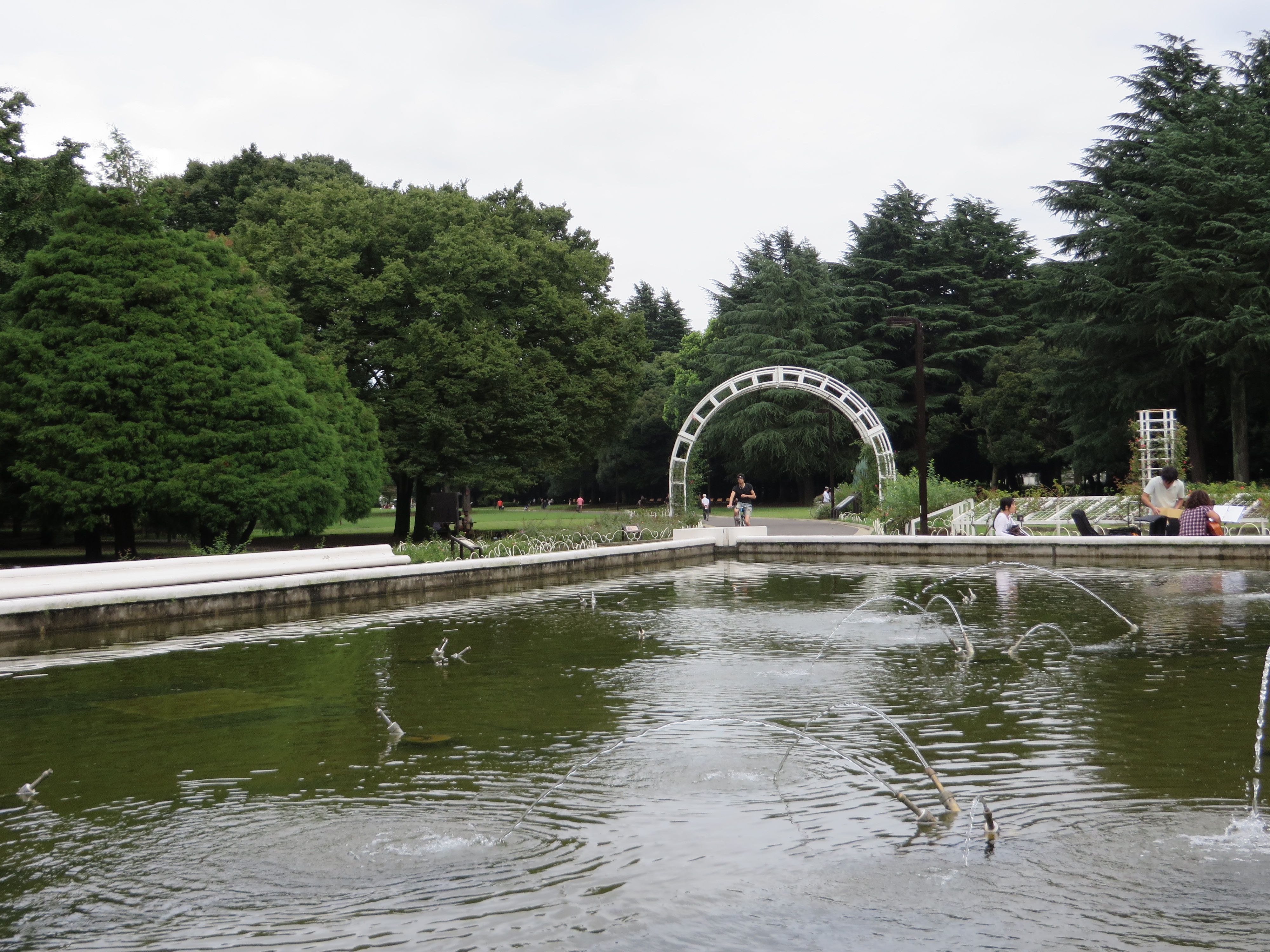The shrine is adjacent to Yoyogi Park, Tokyo’s largest park. The park was once an imperial army training ground. It also housed athletes for the 1964 Olympics and still has a couple of the stadiums. Again, we missed out by not visiting on a Sunday, when it is reputed to be filled with colorful, young characters, but we still enjoyed strolling through its grassy expanse and admiring its fountains.
