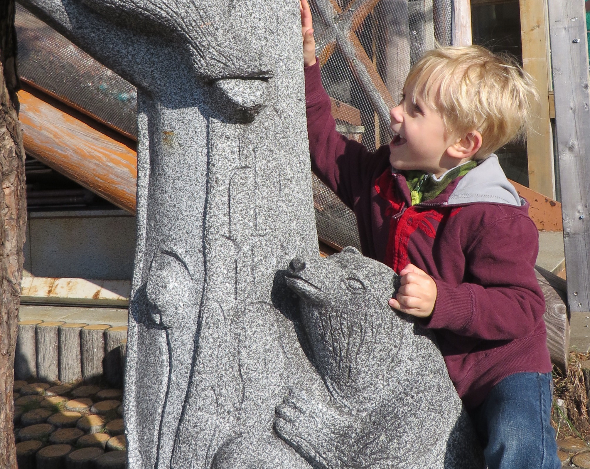 Travelling by bus with a group isn’t exactly my favorite way to be a tourist, but I doubt we’d have made it to Mt. Fuji yet, otherwise. The volcano is visible from parts of the base on clear mornings — lately she’s been snow-capped — but there’s nothing quite like getting to put your feet down onto solid, volcanic soil. I’ll never look at her quite the same again. Indulge me for one final picture: My little bear cub. (Mama Bear, at least, thinks he’s pretty darn cute.)