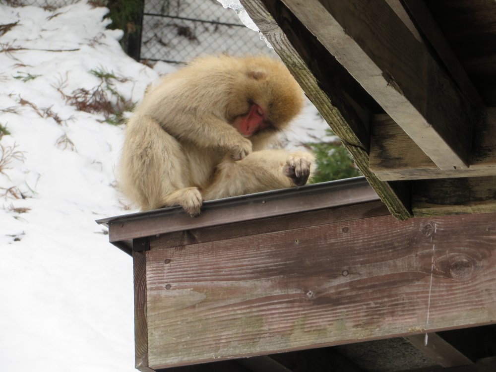 March 11, 2015 Monkeying around in Nagano 4000 × 3000 IMG_5483 Our first monkey sighting! This guy was on the ticket office at the park’s entrance.