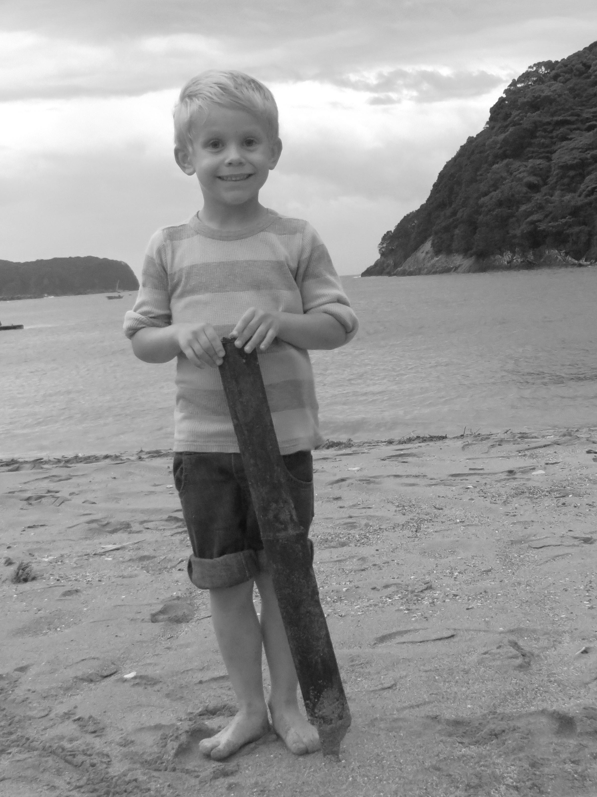 We followed the road briefly before finding a small, sandy beach. We wriggled out of our shoes so the damp sand could tickle our feet and Liam instantly conjured up a big stick to play with. He set to work drawing a portrait of me.