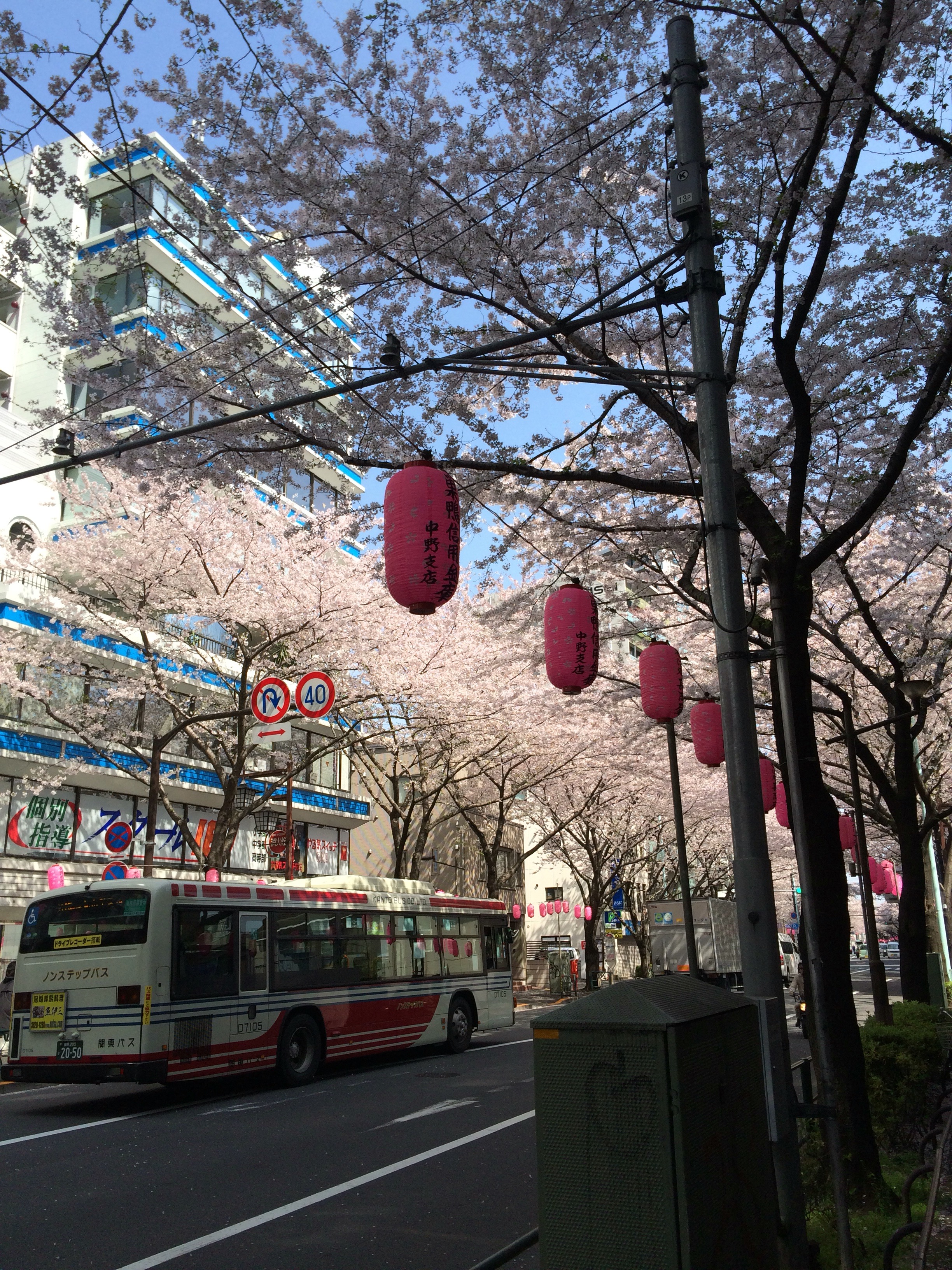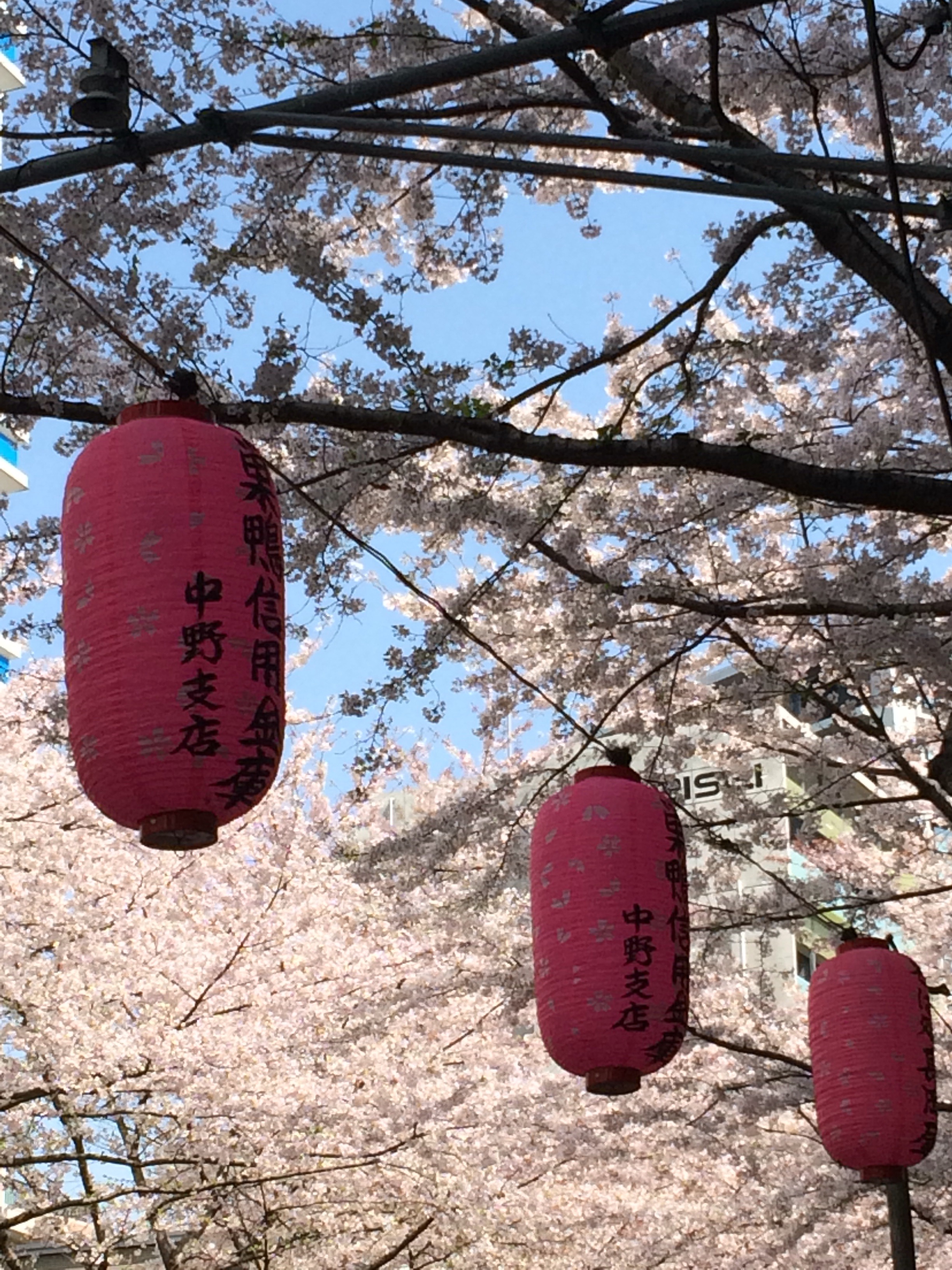 My first stop was the Tokyo neighborhood of Nakano. Lanterns and Sakura line the Nakano Dori, which leads north from the station. It’s a stretch of road that goes on and on — I followed it for roughly three kilometres — all of it lined by frothy trees.
