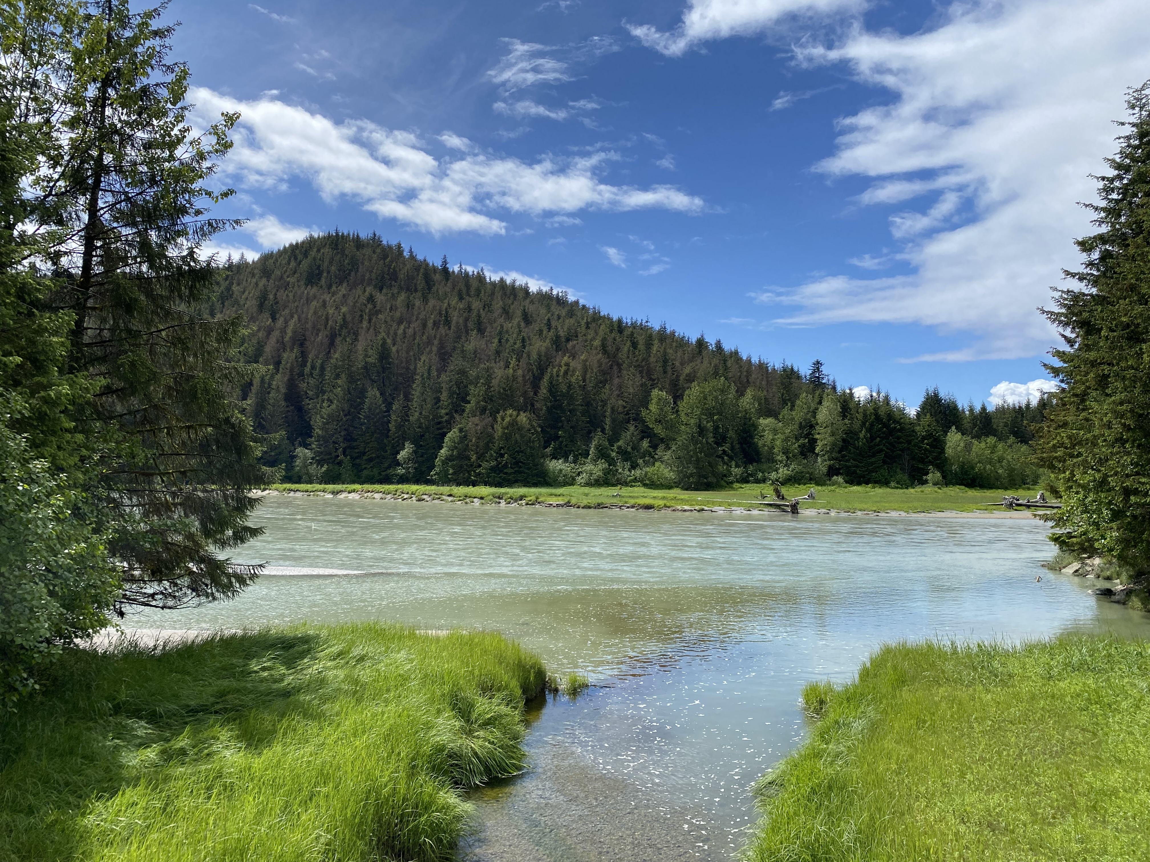 Good news: I love nowhere. Nowhere is where extended family live. It’s where bald eagles perch on the lamplights on the *one* road that travels out to the airport. Where trash cans need special locks, downtown, to keep the bears from snacking in between meals. It’s where soft rain patters down nearly every day of the year but blissfully pauses so above-mentioned cousin can get married under blue skies in a meadow next to a river with snow-capped mountains offering their blessing in the background.