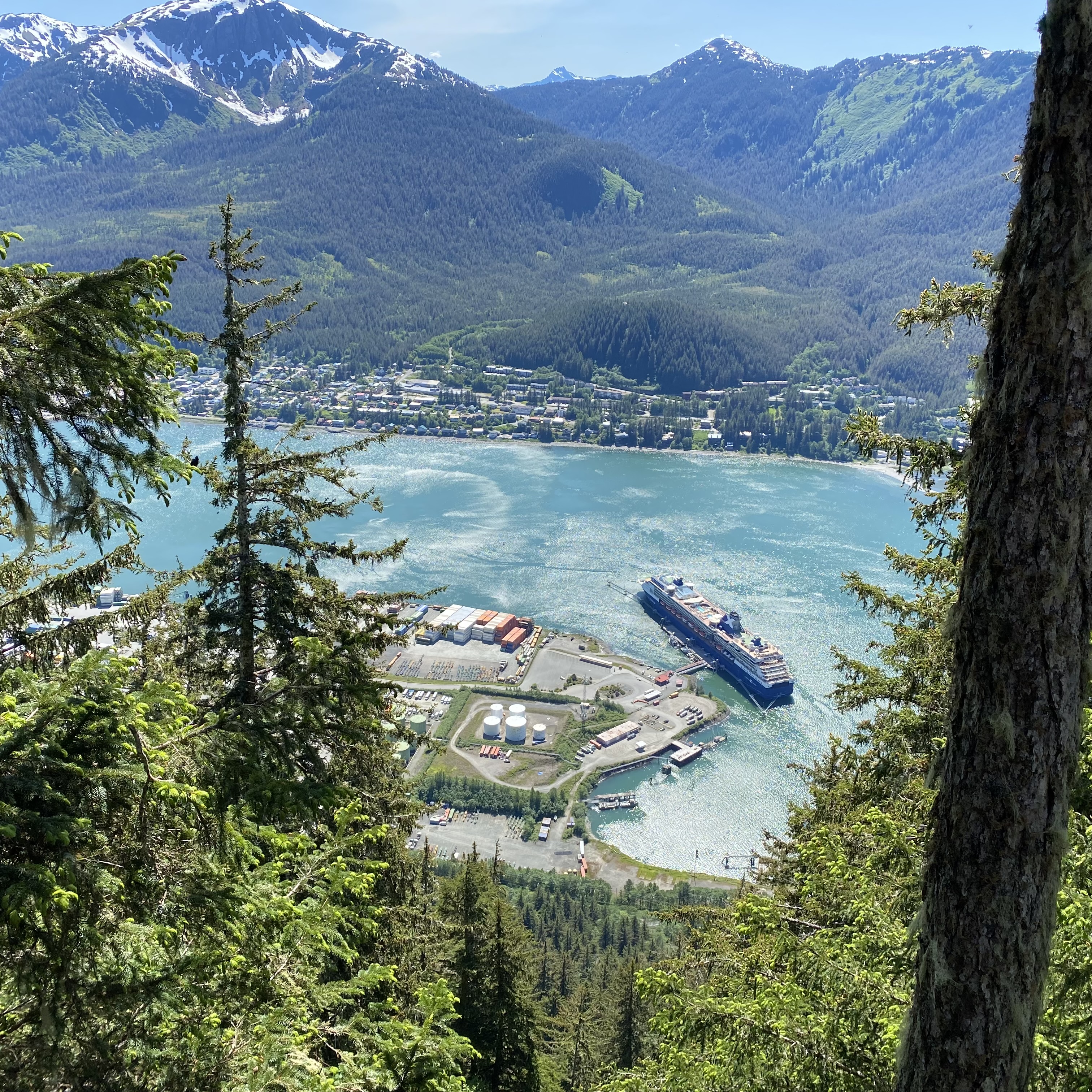 We popped in and out of the many shops catering to the tourist crowds and enjoyed picking out a few souvenirs for ourselves. (How could we resist a magnet that says: Sleeping bags are burritos for bears.) A very friendly company driver shuttled us out to the Alaskan Brewery tasting room so we could sample some of Alaska’s finest brews. We cabled up to the top of Mt. Roberts so we could view Juneau from above and take a short hike for some breathtaking vistas.