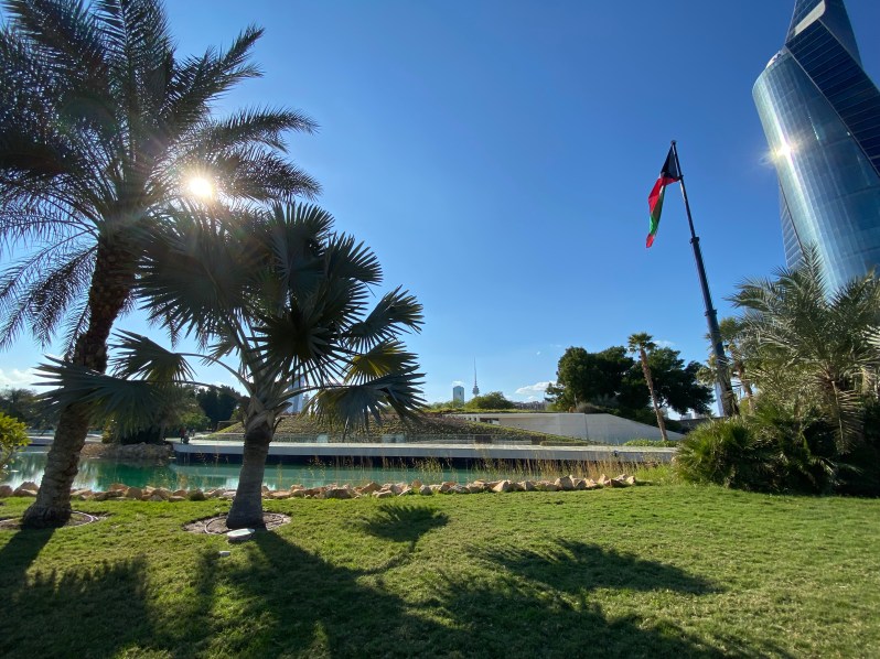 Sifting through the Kuwait-themed goods for sale in shops in February. We think the US loves its Red, White and Blue? I see you and raise you to Kuwait’s love of Red, White and Green (and Black!). The flag is everywhere in February – even in giant multi-story form hanging from balconies – and in multicolor light displays outside, similar to our Christmas holiday decorations.