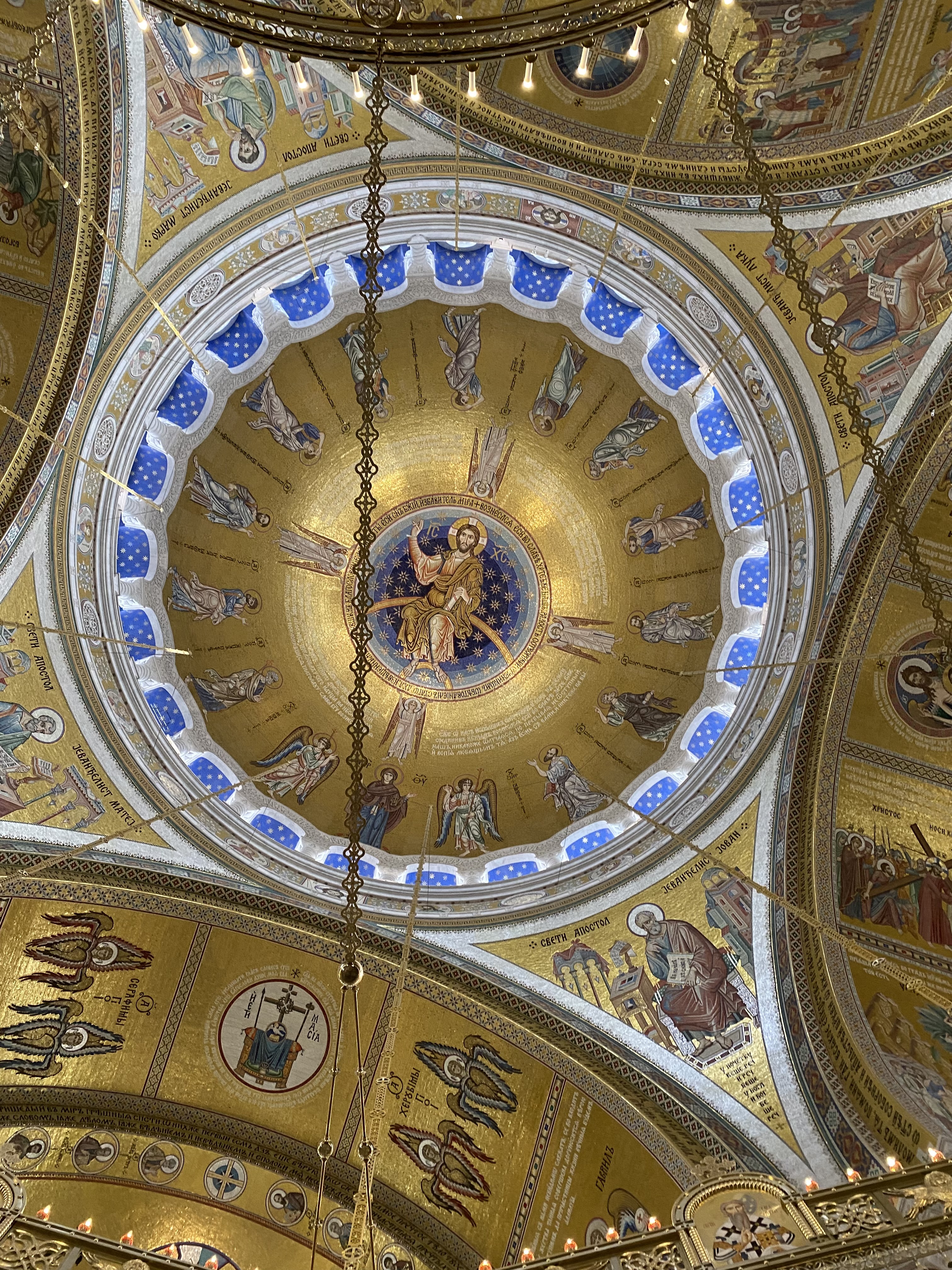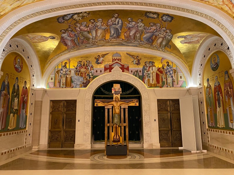 It’s a beautiful, awe-inspiring structure. The concrete dome alone weighs 4,000 tons. The exterior is white marble and granite, with a soaring interior of golden mosaics. This is a church which embraces visual storytelling. Everywhere you look, there are vivid depictions of saints and stories from the Bible. The crypt below, brighter than you might think, is similarly adorned. I was struck by the scale of the place – from the tiny tiles which combine to form the mosaics on up to the 14-ton chandelier, which some sources site as the largest in the world.