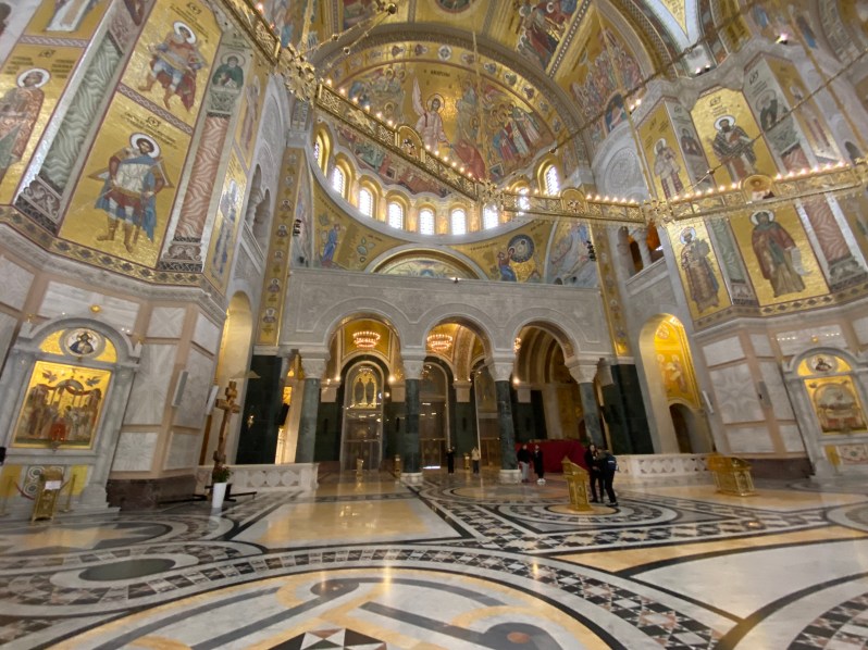 In this case, the history of the temple dates back to the Ottomans burning the remains of Saint Sava, the founder of the Serbian Orthodox Church, on the site in 1595. The current temple had a foundation stone placed in 1935, but years of war and communist religious suppression in Yugoslavia meant proper construction didn’t begin again until 1985. It was officially finished in 2020 but we noted quite a bit of construction still visible on the grounds.