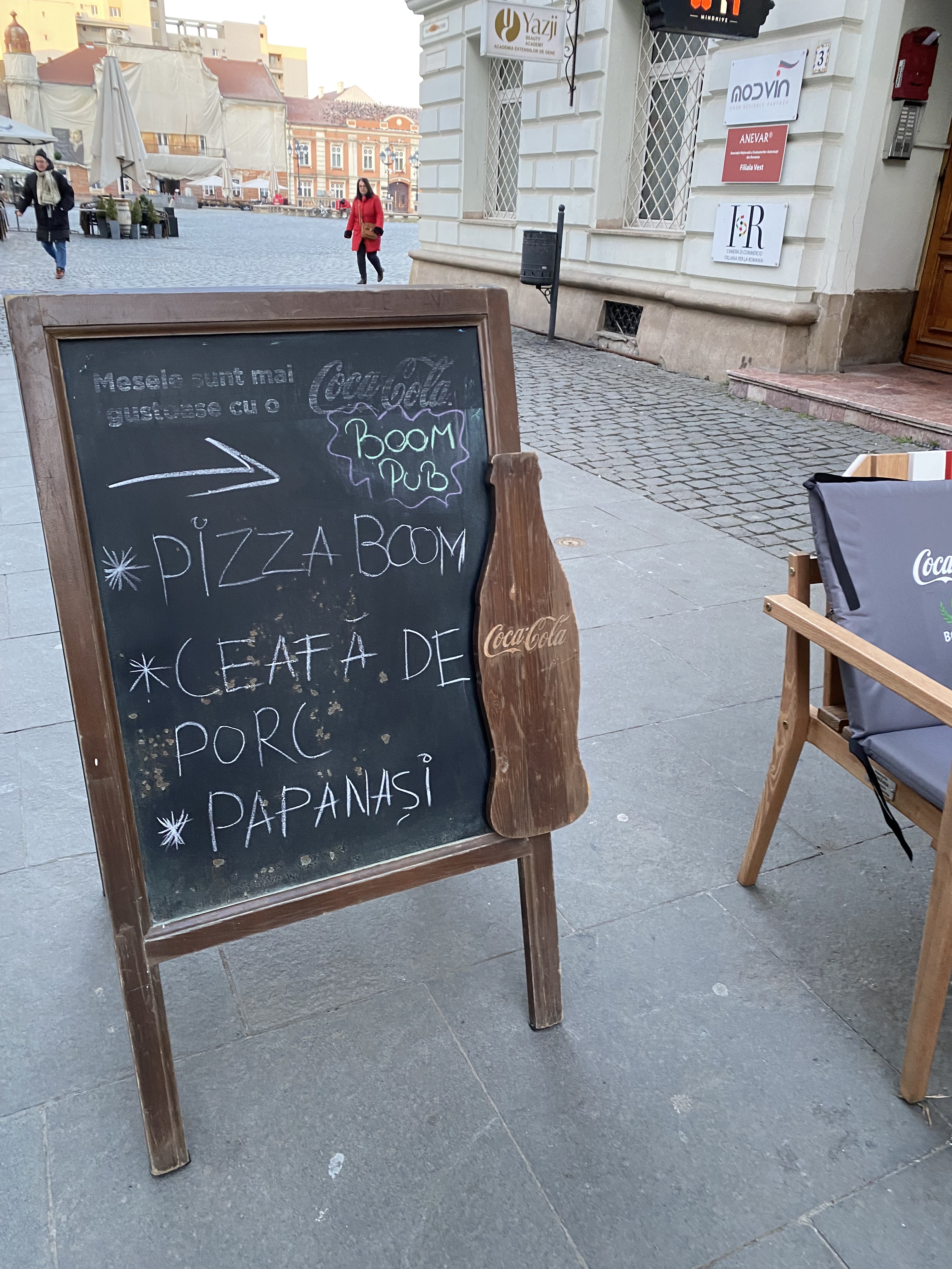 The Romanian portion of our week also came with some good eats. I had scoped out traditional-style restaurants ahead of our visit to Timișoara. Our choice of the restaurant Miorita did not disappoint. We were guided back to our table through a sensory-overloaded series of dining rooms, rag rugs covering the wood planks beneath our feet, arched brick ceilings above, all enclosed by brick walls displaying richly-hued Romanian textiles and even traditional folk dresses. We were seated at a long table covered by elaborately embroidered tablecloths and handed huge menus.
