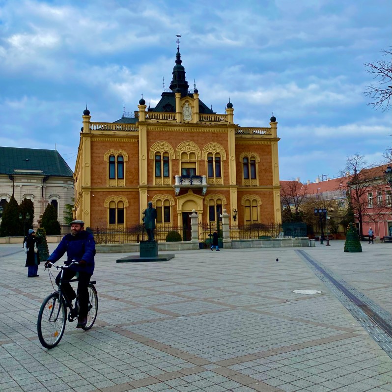There are roughly 16 kilometers of tunnels which form a web under the fortress. One of them offers walkers a route out of the fortress toward Novi Sad. After a bit of confusion, we found the tunnel and made our way into town. It’s an elegant city, with many grand 19th-century buildings painted in pastel colors. Compared to the fortress across the river, it’s comparatively young, having been founded in 1694. It’s also, thankfully, quite flat, which meant our wandering from square to square did not involve any steep climbs.